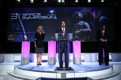 The Astronauts Memorial Foundation presented the Alan Shepard Technology in Education Award to Dr. June Scobee Rodgers in the opening ceremony of the 31st National Space Symposium. The award was presented by AMF President & CEO, Thad Altman, and AMF Trustee, Laura Churchley Shepard.