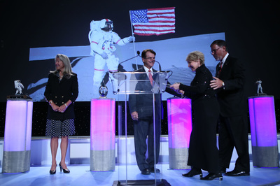 The Astronauts Memorial Foundation presented the Alan Shepard Technology in Education Award to Dr. June Scobee Rodgers in the opening ceremony of the 31st National Space Symposium. The award was presented by AMF President & CEO, Thad Altman, and AMF Trustee, Laura Churchley Shepard.