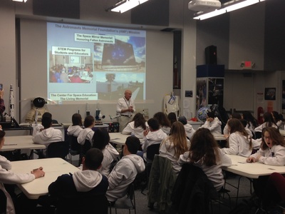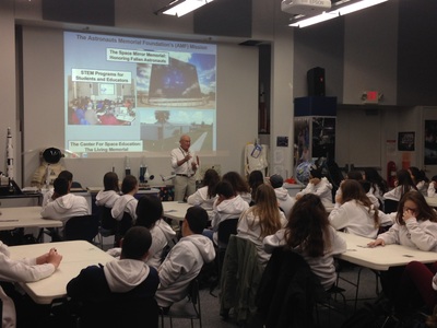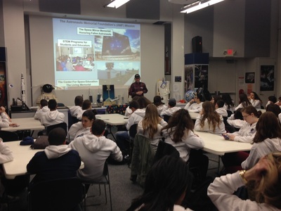 On Monday, February 2, 2015, forty-four ninth grade Israeli Students from the same high school that Ilan Ramon attended visited the Center for Space and the Space Mirror Memorial. During their visit, special guests gave short speeches honoring the Astronauts Memorial Foundation, Ilan Ramon, and all of the other astronauts honored by the Foundation. Speakers included Alan Helman, the founder of the Astronauts Memorial Foundation; Jon McBride, the immediate past chairman of the Astronauts Memorial Foundation and former astronaut; Bob Sieck, trustee for the Astronauts Memorial Foundation and former NASA launch director; and Rabbi Patricia Hickman.